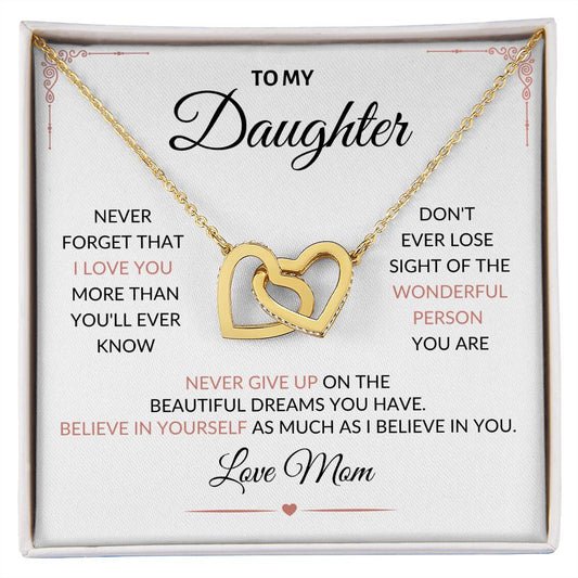 To My Daughter Love Mom | Interlocking Hearts NecklaceRegular price From $59.95 USDRegular priceUnit price per$119.90 USDSale price From $59.95 USDSale